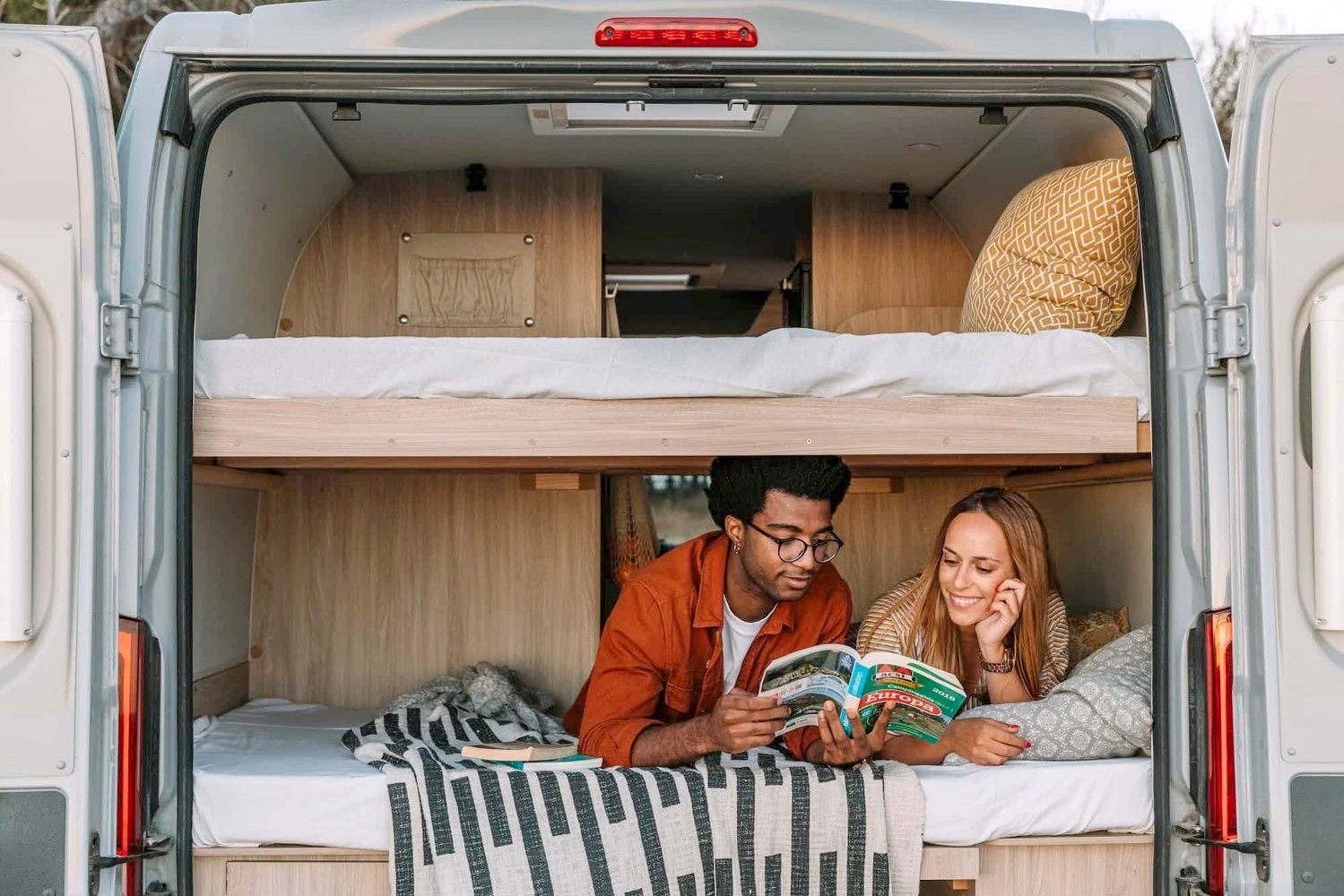 Das Fahrzeug hat eine Kapazität für 4 Personen (zum Reisen und Schlafen): Mit 2 umbaubaren Doppelbetten (unteres Bett - 1,83m x 1,27m | oberes Bett - 1,70m x 1,20m) ist es die ideale Option für alle Arten und Gruppen von Reisenden.